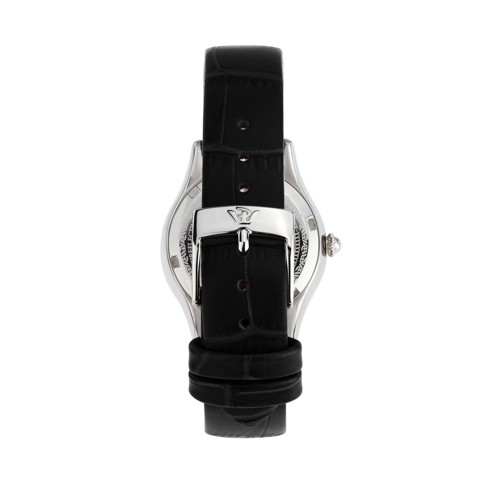 Женские кварцевые часы Philip Watch Grace R8251208502. Стальной корпус диаметром 32 мм, серебристый циферблат с рисками, сапфировое стекло. Черный кожаный ремешок на пряжке. Водозащита 100 метров (10 АТМ) для плавания и водных видов спорта. Швейцарский кварцевый механизм, гарантия 2 года.