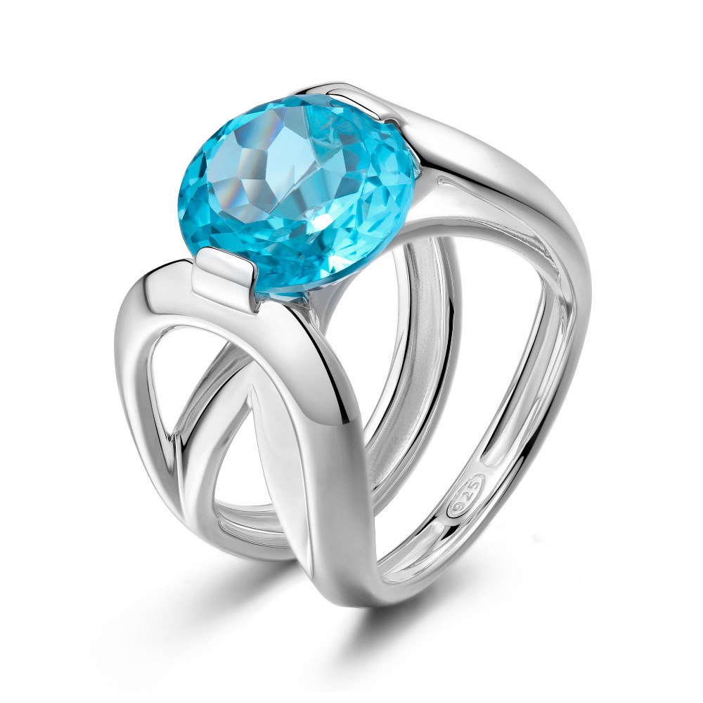 Кольцо Pianegonda из коллекции Tecum. Металл - серебро 925 пробы, голубой топаз, 7,3 ct , гальваническое покрытие родием, средний вес серебра в изделии - 12 гр.